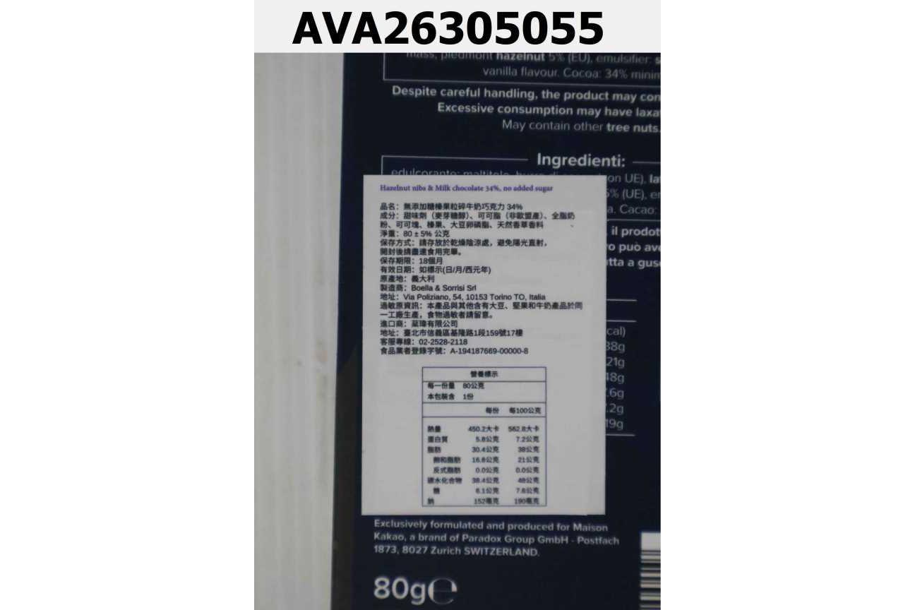 無添加糖榛果粒碎牛奶巧克力 34%