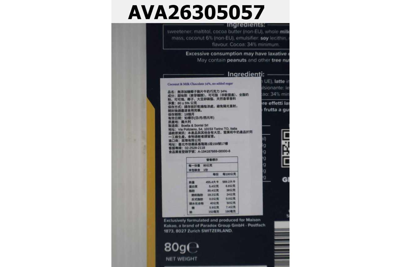 無添加糖椰子脆片牛奶巧克力 34%