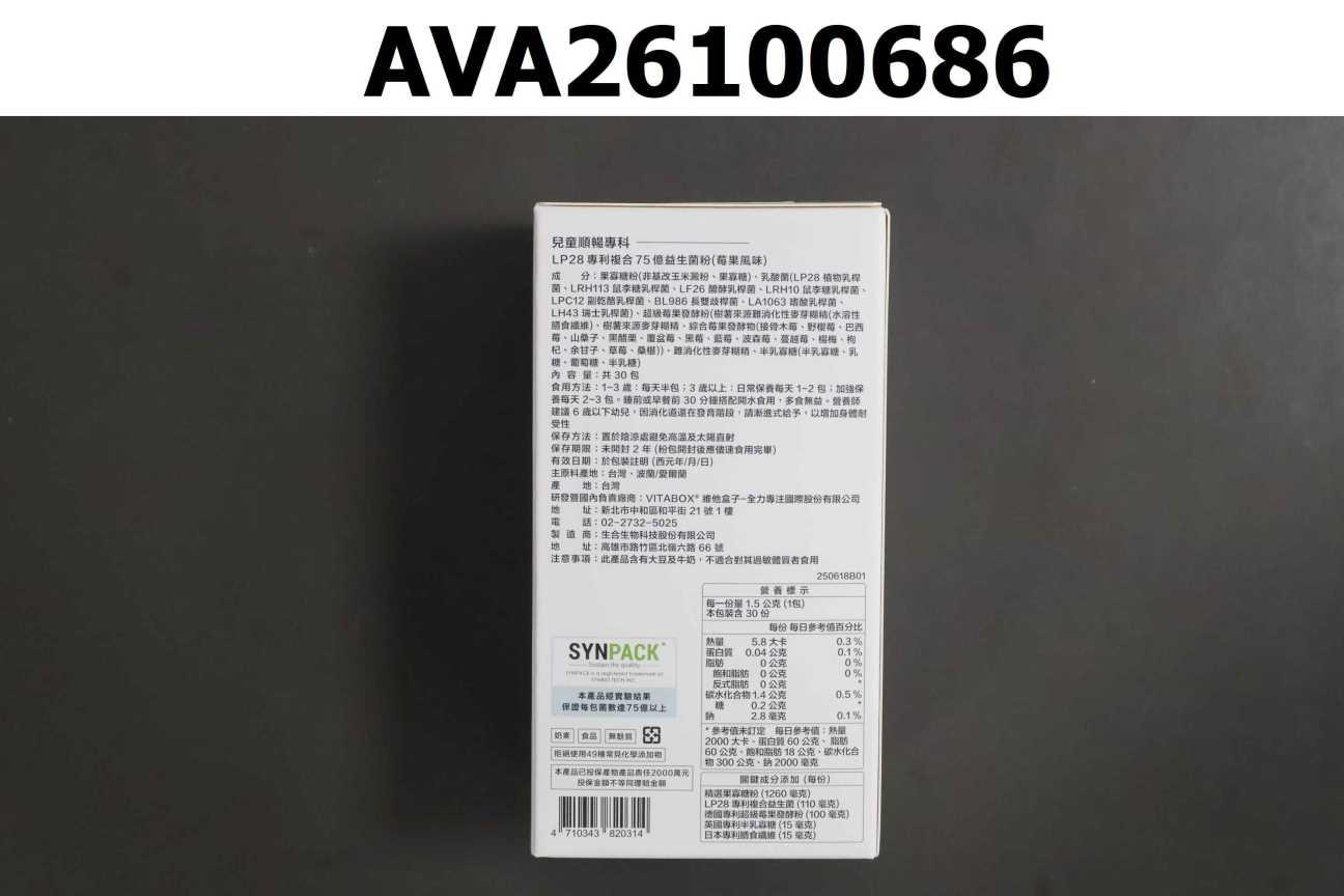 【兒童順暢專科】VITABOX® LP28專利複合75億益生菌粉(莓果風味)